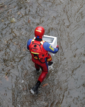 Heute Morgen bekam unser Wasserwehr die Alarmierung „Umweltgefährdung Triebisch“. Genauer ging es darum verschiedenste Gegenstände wie zum Beispiel eine Mikrowelle, Autoreifen und so weiter zu bergen. Der erste Trupp fuhr voraus und flog die Triebisch mithilfe unserer Drohne ab, dabei erforschten wir die Einsatzstelle genauer und überlegten gemeinsam das weitere Vorgehen. Der Strömungsretter des zweiten Trupps lief im Anschluss von der Triebischmündung in Richtung der Johannesbrücke, wo die Mikrowelle lag. Nach kurzer Abstimmung mit dem Einsatzleiter wurde die Mikrowelle und der andere Unrat erfolgreich geborgen und entsorgt.